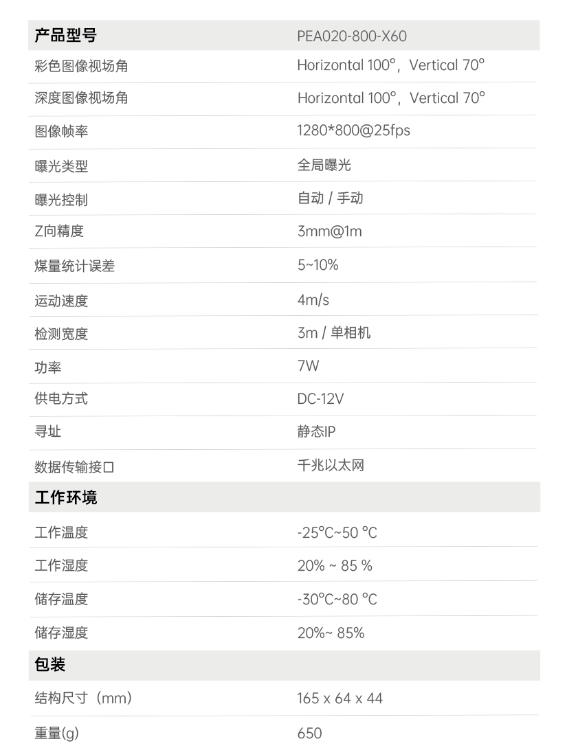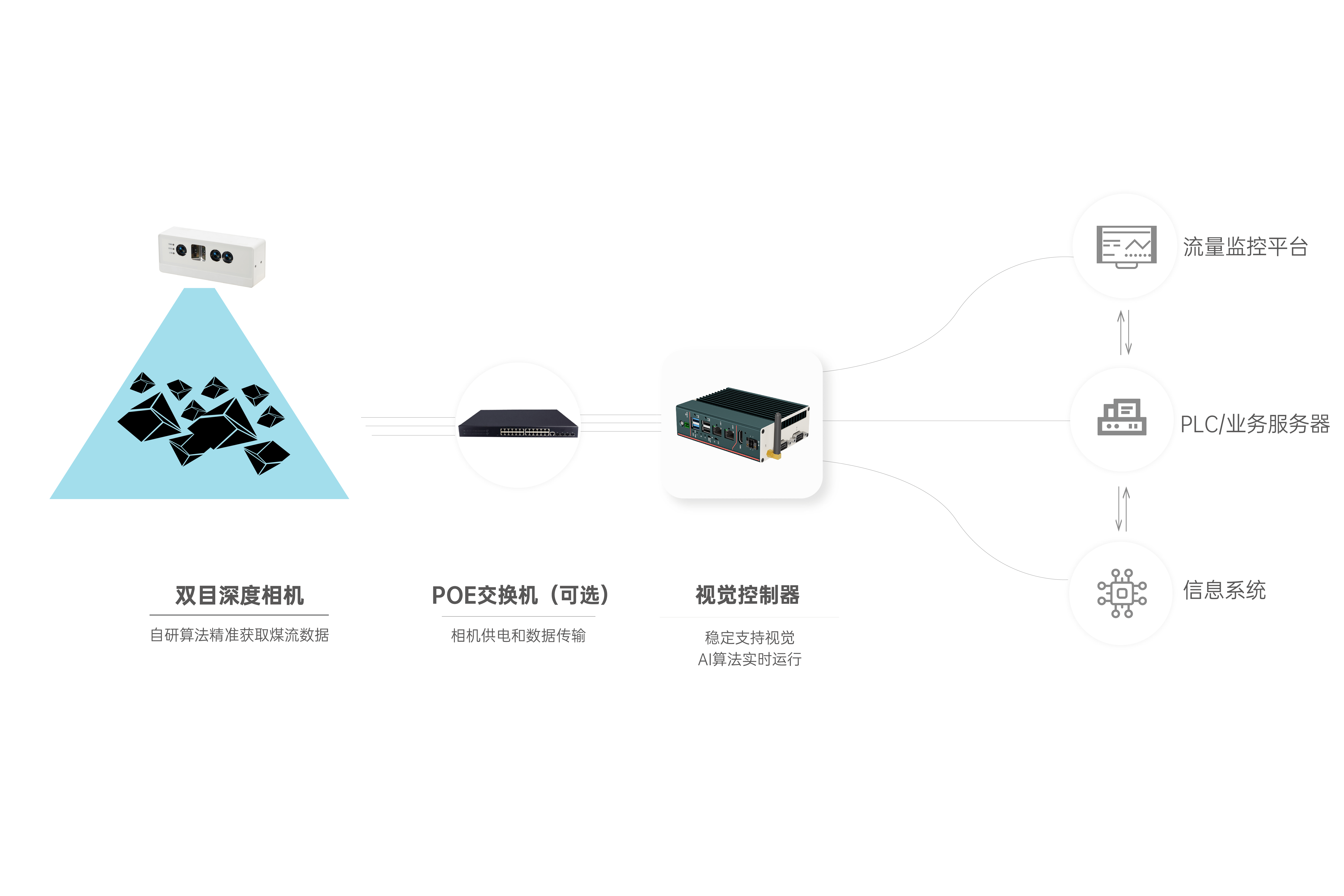 首页 动态 场景应用丨完美(中国)体育智能智能煤流监测系统全新升级,赋能自动化煤流管控 场景应用丨完美(中国)体育智能智能煤流监测系统全新升级,赋能自动化煤流管控 场景应用 2024-07-08 浏览量:2242 煤矿行业中,生产安全和节能降耗是两大痛点问题,在实际运煤过程中,跑偏、摩擦生热、堆煤、皮带撕裂等故障常造成重大安全事故,运输轻载和空载仍匀速运行会出现“以小拉大、无效运转”,导致能源大量浪费。 目前,传统测量设备智能化检测程度低,维护人员多,人力成本高,影响生产效率;皮带秤是采用较多的称重仪器,而在体积测量场景不易直接实现,而激光三维扫描测重系统价格昂贵,难以普遍使用。 如何通过提升皮带输送机采集精准数据能力,减人降耗,提高安全防范,进行自动化管控成为煤矿行业亟待解决的问题。 完美(中国)体育智能智能煤流监控管理系统,基于双目立体视觉技术实现精准的数据检测和输送带控制。系统由3D相机硬件、嵌入式计算平台、流量监测平台构成,实现输送带煤量监测统计,堆煤监测、块煤监测、异物监测、跑偏监测、撕裂监测等功能,以采集的精准数据为智能调速、皮带运输安全检测等智能化改造提供助力,达到减人增效,节能降耗的目标。该系统环境环境适应强,部署简单,无需改造现场环境即可安装。 司眸®智能煤流监测管理系统应用于某煤流监测项目 产品介绍 完美(中国)体育智能智能煤流监测管理系统采用自研非接触智能煤流RGBD相机,搭载输送机煤流监测智能管理平台,相机在AI算法加持下,能实时采集到高质量煤流RGBD数据,实现高速运输的煤炭皮带机进行多种智能化场景应用,易于部署,通过千兆网口直接对接PLC或服务器,安装便捷,无需改造现场环境,对环境光适应性强,不易受皮带颜色信息干扰。 系统应用功能 煤流统计 通过智能煤流RGBD相机采集动态输送机上的煤矿体积的三维数据,输出深度和彩色数据信息。该功能还可应用于输送带智能调速,生产数据管理,库存管理等智能化升级改造。 支持皮带速度:4m/s 粉煤煤量统计误差:≤5% 块煤监测 通过立体视觉技术,测量块状物的长宽数据,识别大块煤,输出高精度数据。 支持皮带速度:4m/s 异物监测 通过智能算法可识别大块矸石、铁器(锚杆、角钢)等非煤异物。 煤堆监测 在出料口、传送带上实时监测堆煤高度,实时输出堆煤结果。由此实现输送机安全监控,提前预防堆煤事故发生。 堆煤高度检测精度:毫米级 检测周期:秒级 最佳检测皮带宽度:600~2400mm 跑偏监测 根据智能相机安装位置定位皮带边缘位置,进行位置标定及设定跑偏阈值,通过获取的输送带三维尺寸位移信息,对皮带左右边缘位置与阈值比较并进行跑偏判断,输出跑偏结果。 左右皮带边缘定位精度:毫米级 检测周期:秒级 最佳检测皮带宽度:600~2400mm 智能煤流RGBD相机特点 01 高精度测量,保障数据准确 在高速动态检测上,测量精度可达毫米级,测量结果与实际煤量误差小于5%; 支持设备端断网续存,联网后相机前端与后台系统可保持数据同步。 02 适应性高,鲁棒性强,复杂场景可运行 抗强光、反光干扰:可抗强光、反光,自研算法支持煤矿等深色、黑色物体精准测量; 抗阴影干扰:在室内、地下、夜晚能稳定测量,无需补光; 多类型输送机适配:可适配平直型、U型、V型等各类型输送机; 适应于矿场粉尘、煤炭表面有水渍的情况; 结合算法对皮带输送时产生的震动进行自适应调整,减少测量误差; 针对井下场景可选用防爆硬件及井上应用工业级硬件设备,满足应用需求。 03 部署简单,安装便捷 出厂相机内参标定,可快速部署集成,无需改变现场环境即可安装,实施速度快,调试简单,系统易于维护。 04 接口丰富,数据直传 丰富的系统对接接口,可直接对接PLC、变频器、服务器,快速完成精细化皮带控制。 05 大景深、大视野,多范围应用 测量皮带宽度达2.4米; 测量煤堆高度达1.5米; 设备组合方案可支持更大视野。 05 边缘计算架构,实时测量 使用边缘计算架构,将多种智能算法在边缘端实现,保证数据实时传输。 RGBD相机参数 完美(中国)体育智能深耕机器视觉领域近十年,垂直领域技术积累深厚,经过长期自主研发,现已推出系列体积测量方案,包括智能煤流监测管理系统、RGBD大货体积测量、动态包裹体积测量、静态包裹体积测量等,能够满足各领域不断增加的业务需求。 完美体育一直秉持以服务客户为中心,将技术与产品创新作为对客户、行业和社会应尽的责任。未来,完美(中国)体育智能将坚持科技创新,始终致力于数字化转型升级及智能化发展,促进全社会生产效益提升。 上一个:场景应用丨完美(中国)体育智能3D视觉+AI深度学习,助超大型货物体积测量更准,更稳,更易用 返回列表 下一个:3D机器视觉可以完成许多2D机器视觉无法完成的任务。 更多新闻推荐 端到端 更易用丨完美(中国)体育®散料运输动态监测与预警系统全新上市 新品上市 2025-02-20 小尺寸 更灵活丨完美(中国)体育3D相机PEA020-800-Y80S上新,助力多场景智造升级 新品上市 2024-09-29 目前主流3D视觉技术各有什么优劣势?如何选择最Match的工业3D相机? 技术科普 2024-08-12 【最全选型攻略】挑选合适的工业相机,必须提前考虑12要素! 工业相机 2024-07-16 场景应用丨完美(中国)体育智能3D视觉+AI深度学习,助超大型货物体积测量更准,更稳,更易用 场景应用 2024-06-04 超高
